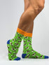 Paws for a moment and check out the "Tail Waggers" socks, featuring a happy horde of dogs on both green feet! This delightful pair combines playful style, personality, and a dash of doggy charm, making them a unique gift for dog enthusiasts.